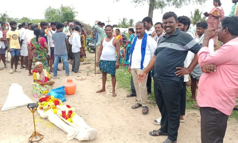 With no alternative, the body was kept on the road for several hours in protest. Local authorities finally intervened when Tahsildar Vijaya Kumari arrived at the scene and persuaded the family and community to conduct the burial at a nearby location. The matter drew criticism for administrative inaction and encroachment apathy.
