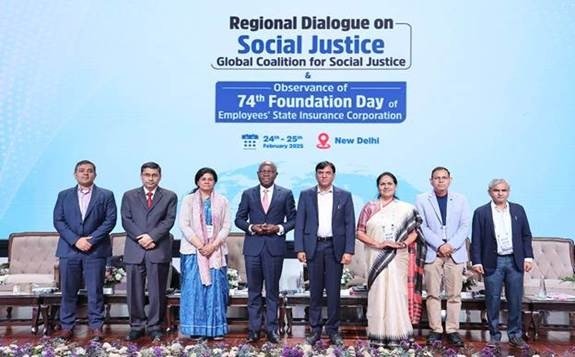 New Delhi: The Ministry of Labour and Employment, along with the Employees’ State Insurance Corporation (ESIC), hosted a two-day Regional Dialogue on Social Justice in collaboration with the Global Coalition for Social Justice and the International Labour Organization (ILO). The event, held at Bharat Mandapam in New Delhi from February 24-25, brought together over 500 representatives from governments, industry bodies, international organizations, and academia to discuss key social justice issues.