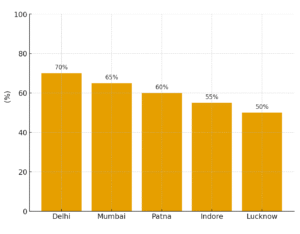 In metro cities such as Delhi, Mumbai, Bengaluru, and Kolkata, the situation is even worse. The Delhi Transport Survey (2022) revealed that 70% of bank branches in the capital operate without parking facilities.