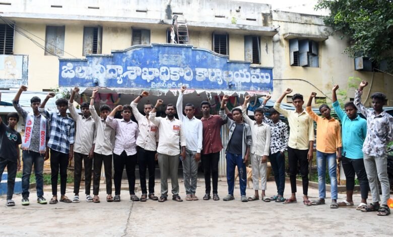 Kadapa – Andhra Pradesh: The Revolutionary Students Federation (RSF) staged a protest on Thursday in front of the District Education Office (DEO), demanding accountability from the management of Vigyan School after a school bus accident in Vallur mandal left 45 students injured.