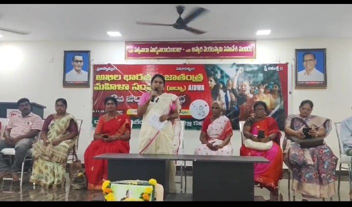 The event began with former District Treasurer Kandikatla Girija unfurling the AIDWA flag, followed by floral tributes to Raghavamma’s portrait. The meeting was presided over by Sudharani. State leader Poorna announced that the AIDWA State Congress would be held in Anantapur on October 13, 14, and 15, where key resolutions on women’s issues will be passed.