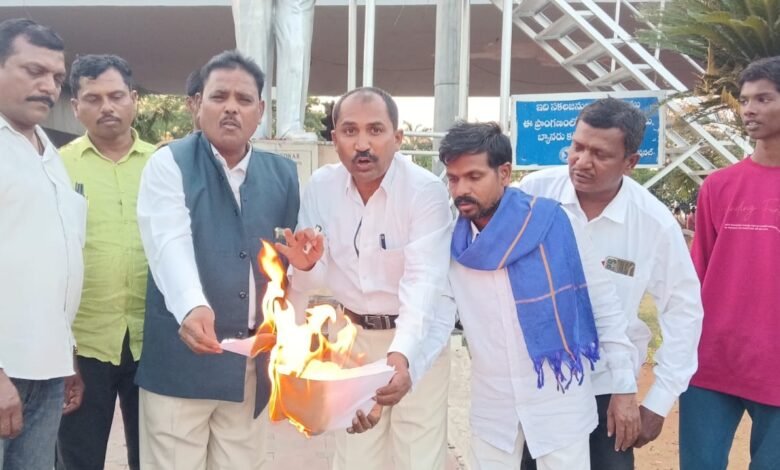 Hyderabad: Leaders of the SC Anti-Classification Struggle Committee and Mala Mahanadu Netakani Mahar staged a protest on Wednesday at the Ambedkar statue near Tank Bund Liberty Center, Hyderabad. They burned copies of the Assembly resolution supporting SC classification and accused the Congress-led Revanth Reddy government of betraying Dalit interests.