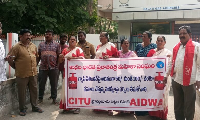 Proddatur – Andhra Pradesh: The Women’s Association (Aidwa) and CITU organised a protest at the Balaji Gas Office in Proddatur, alleging that the agency has been collecting an additional Rs 50–Rs 100 per LPG cylinder from consumers. The leaders urged officials to intervene and ensure fair pricing.