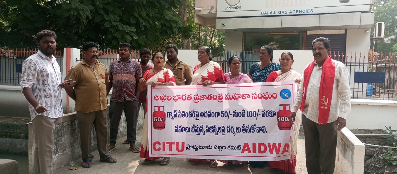 Proddatur – Andhra Pradesh: The Women’s Association (Aidwa) and CITU organised a protest at the Balaji Gas Office in Proddatur, alleging that the agency has been collecting an additional Rs 50–Rs 100 per LPG cylinder from consumers. The leaders urged officials to intervene and ensure fair pricing.