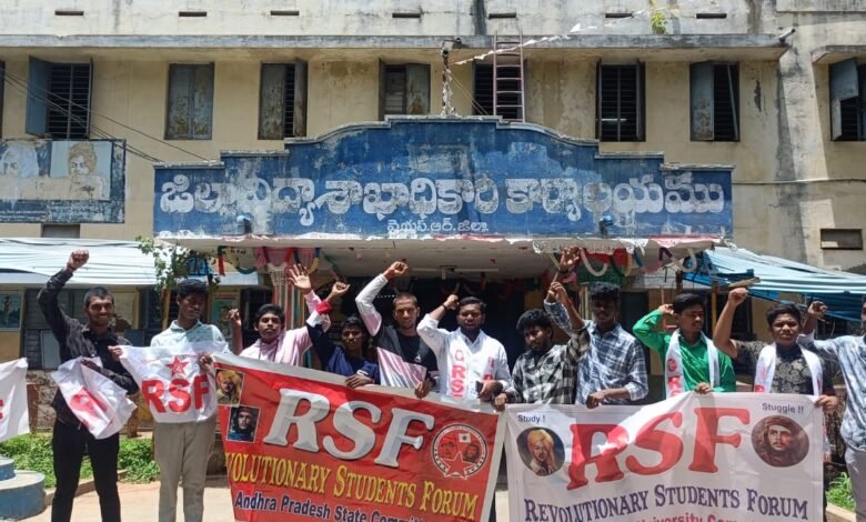 On Thursday, RSF activists staged a protest at the District Educational Officer’s office (DEO) in Kadapa, raising concerns over alleged violations in the filling of aided posts. A petition was also submitted to District Educational Officer Shamsuddin, seeking immediate action.