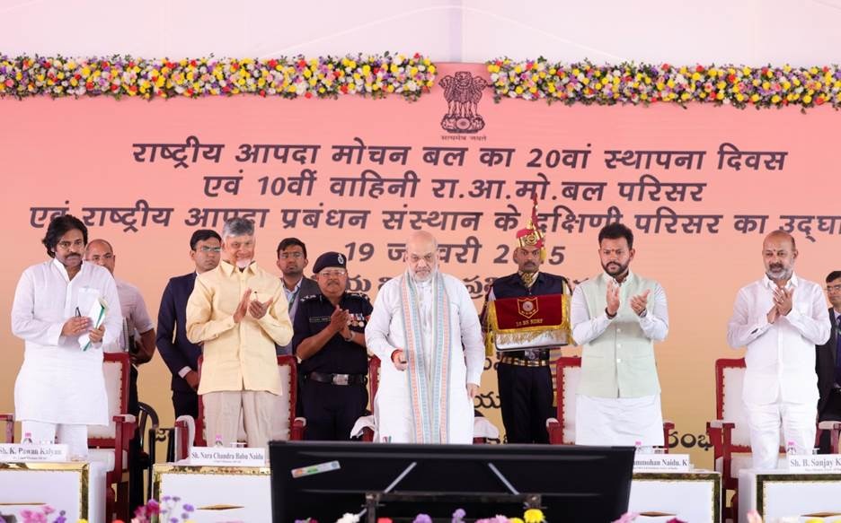 The ceremony saw the participation of several prominent figures, including Andhra Pradesh Chief Minister N Chandrababu Naidu, Union Minister of Civil Aviation K Rammohan Naidu, Union Minister of State for Home Bandi Sanjay Kumar, AP Deputy CM Pawan Kalyan, Home Secretary Govind Mohan, and NDRF Director General Piyush Anand.
