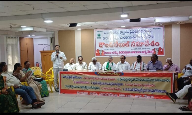 Vijayawada – Andhra Pradesh: Meda Srinivas, General Secretary of the Journalists Democratic Rights Forum (JDRF), criticized Andhra Pradesh’s Members of Parliament (MPs) for their inaction, stating that their weaknesses have become a curse for the state’s future. Speaking at a round table meeting at MBVK Bhavan in Vijayawada on Sunday, organized by the Visakha Ukku Parirakshana Porata Aikhya Vedika, he called for unified action against the privatization of Visakhapatnam Steel Plant.