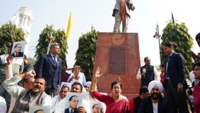 AAP protests removal of Ambedkar’s portrait, BJP faces backlash