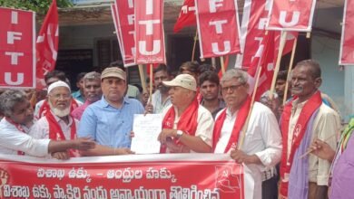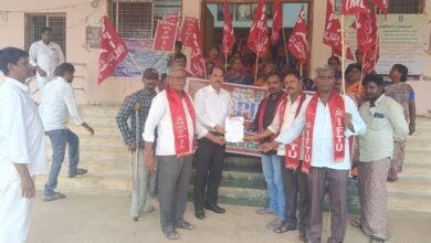 Andhra Pradesh: CITU, IFTU, and Rythu Kooli Sangham leaders staged a protest in front of the MRO office in Yemmiganur,…