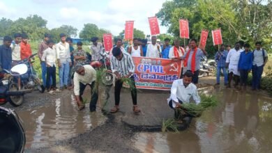 Andhra Pradesh: In a unique and symbolic protest, villagers and motorists planted paddy in the pothole-filled Yemmiganur–Kosigi main road on…