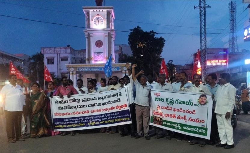 Amalapuram – Andhra Pradesh: Dalit and public organizations in Amalapuram strongly condemned the attack on Chief Justice of India Balakrishna Gavai by lawyer Rakesh Kishore, describing it as a grave assault on the nation’s democratic values and judicial integrity.