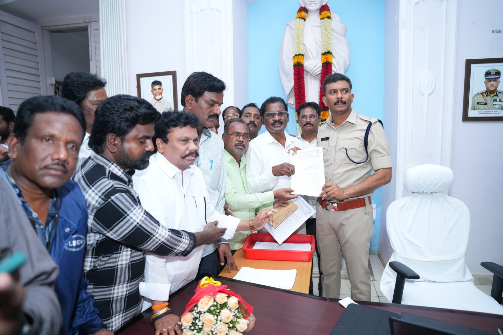 Leaders from Tirupati Ambedkar Bhavan Committee, Andhra Pradesh Scheduled Castes Welfare Association Tirupati, and Prajasanghaala Ikya Vedika met SP Harshavardhan Raju to highlight lapses in the investigation and demand justice for the victim, James.