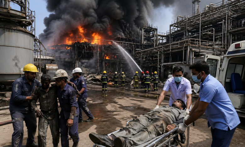 The incident occurred on April 23, 2026, at a chemical manufacturing unit located in the Jhagadia GIDC industrial estate in Bharuch district. The explosion reportedly triggered a fire, injuring at least 16 workers present at the facility.