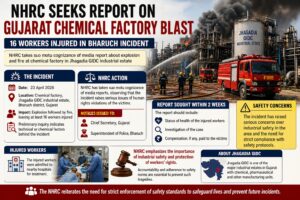 New Delhi: The National Human Rights Commission (NHRC) has taken suo motu cognizance of a chemical factory explosion in Gujarat’s Bharuch district that left at least 16 workers injured, raising serious concerns over industrial safety and potential human rights violations. The Commission has sought a detailed report from state authorities within two weeks.