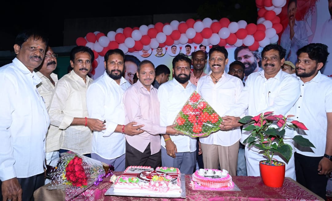 Ramachandrapuram – Andhra Pradesh: The birthday celebrations of Polishetty Chandrasekhar, Jana Sena Party in-charge of Ramachandrapuram constituency and alliance leader, were held on Saturday night in a festive atmosphere. The event saw the participation of State Labour Minister Vasamsetty Subhash as the chief guest, alongside enthusiastic supporters and alliance leaders from Telugu Desam Party (TDP), Jana Sena Party (JSP), and Bharatiya Janata Party (BJP).