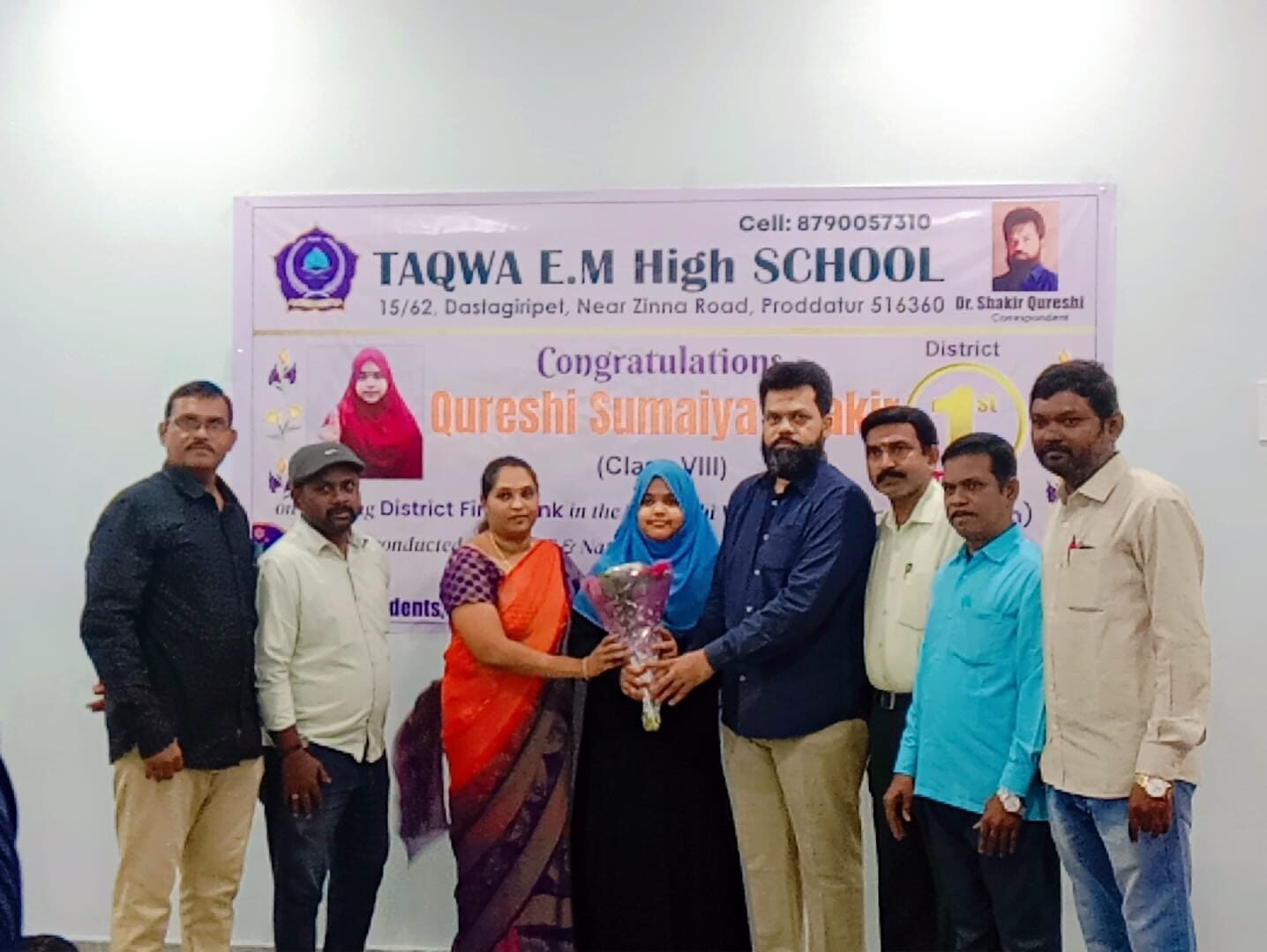 Proddutur – Andhra Pradesh: Taqwa High School’s class 8 student, Qureshi Sumaiah Shakir, achieved a significant milestone by securing the top rank in the Vidyarthi Vigyan Manthan (VVM) 2024-25 examination. This achievement qualifies her for the state-level competition in this prestigious national aptitude test, conducted under the Central Government’s Science and Technology Information Corporation.