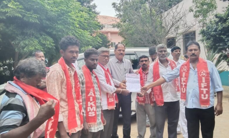 Yemmiganur – Andhra Pradesh: Sanitation workers of Yemmiganur Municipality, whose lives have remained unchanged despite shifting governments, submitted a memorandum to Municipality Commissioner Gangi Reddy on October 14. The workers, led by the Indian Federation of Trade Unions (IFTU) and AIKMS leaders, demanded better provisions and regularization of contract workers.