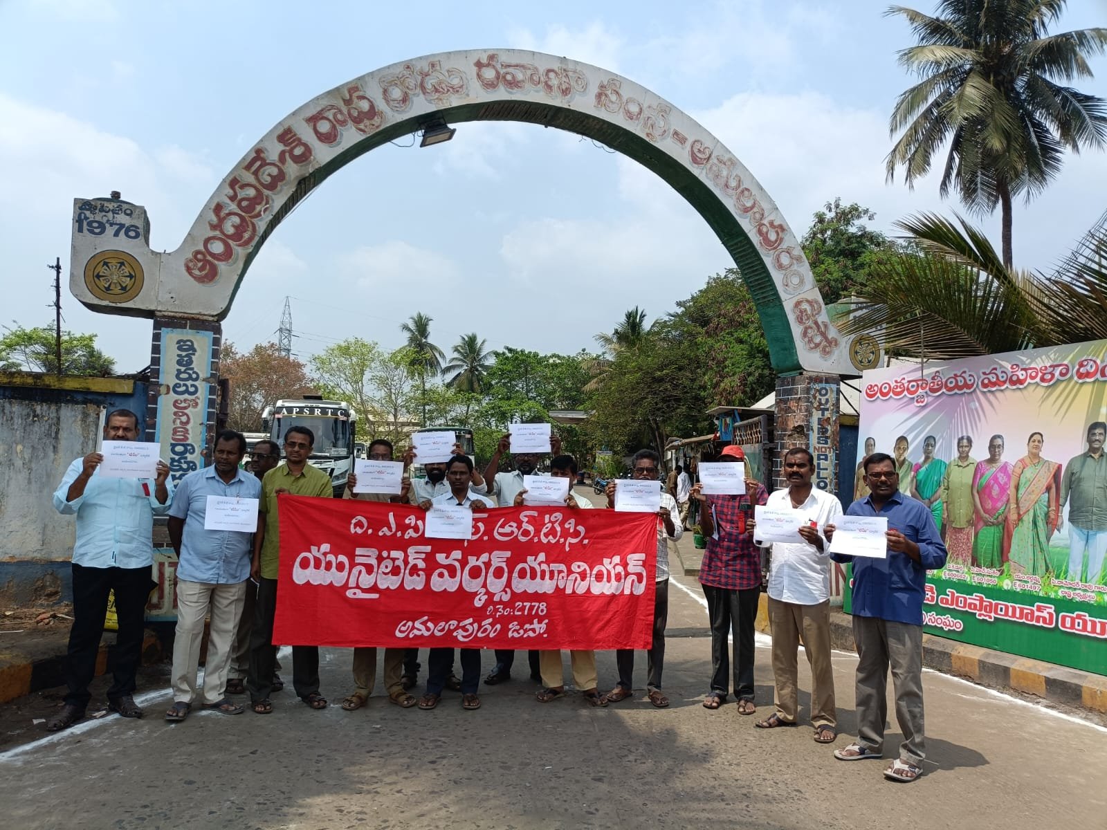 Amalapuram – Andhra Pradesh: Members of the National Mazdoor Union and the United Workers Union staged a protest at the Amalapuram depot on Saturday, demanding an end to the alleged harassment of drivers by the depot manager. The unions also called for the revocation of an illegal suspension and better working conditions.